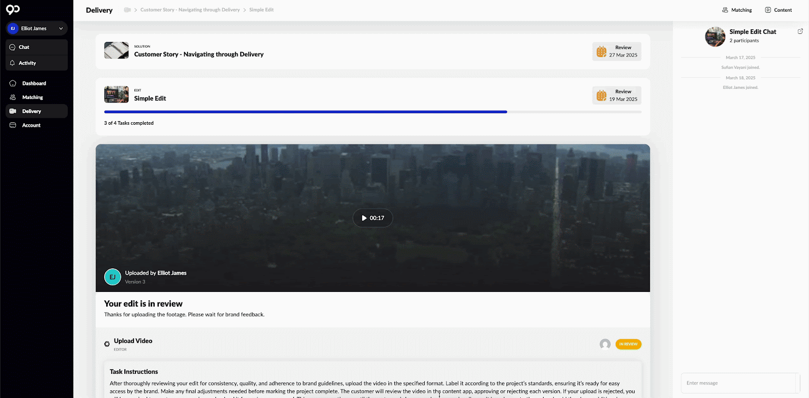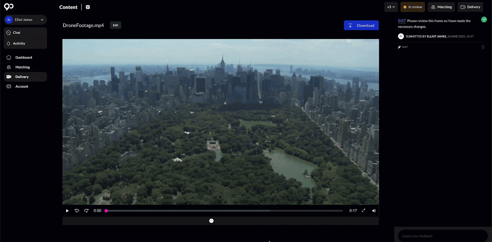 Brands will leave their feedback on the chat, they are able to leave timestamped feedback so you can address any potential changes with accuracy.