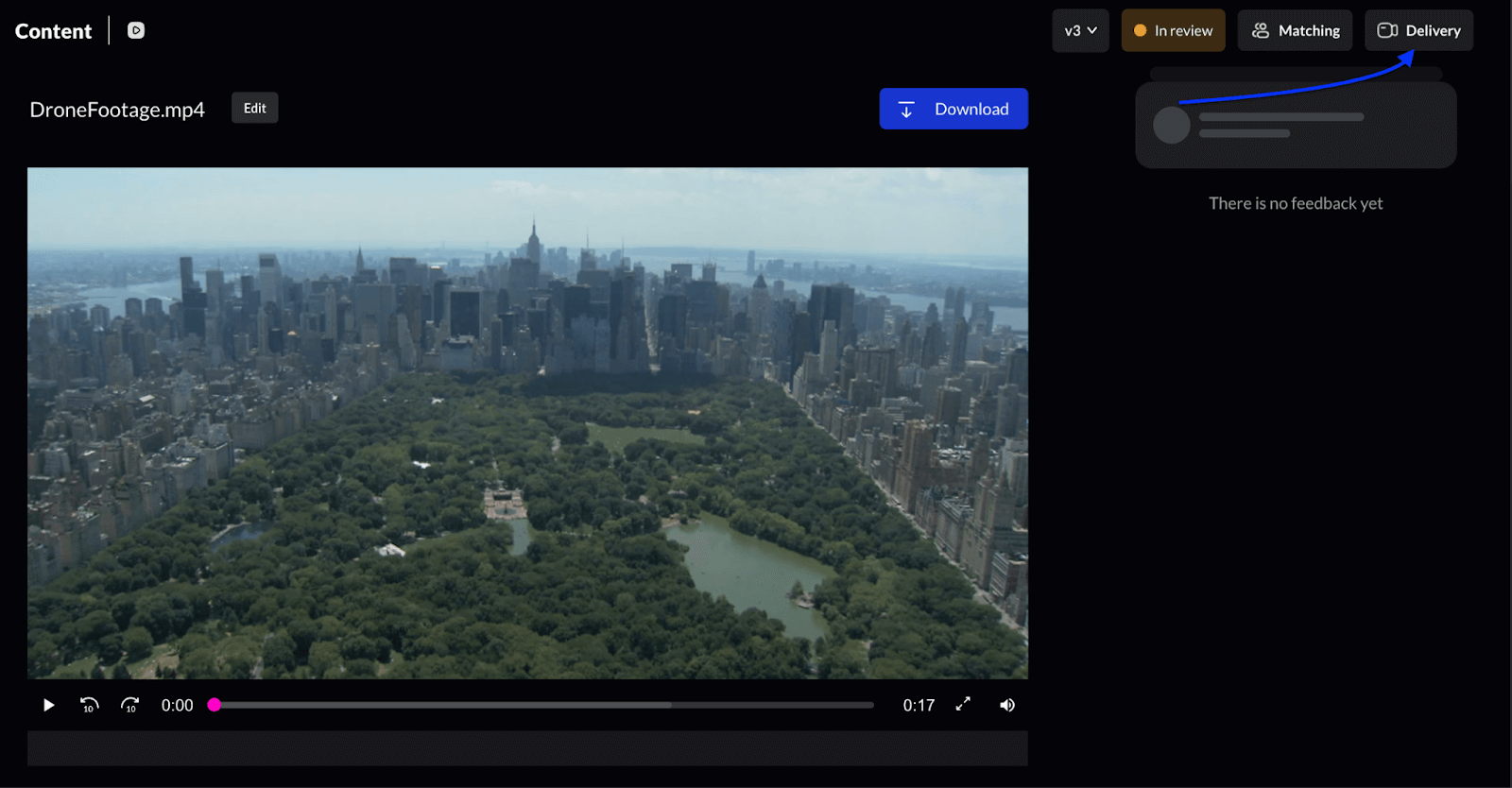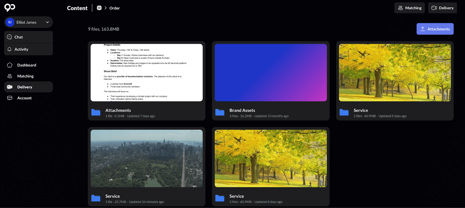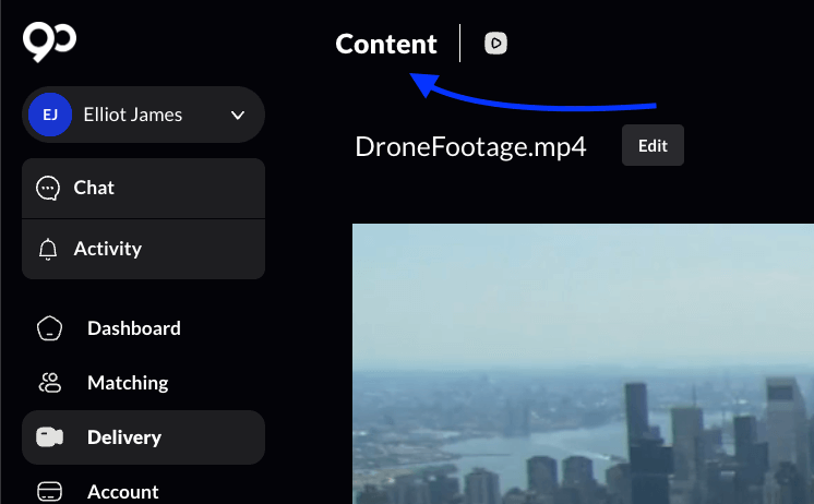 If you would like to view brand assets, attachments and other delivery related footage and files, click on the ‘Content’ button on the top left of the page.