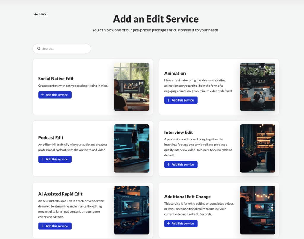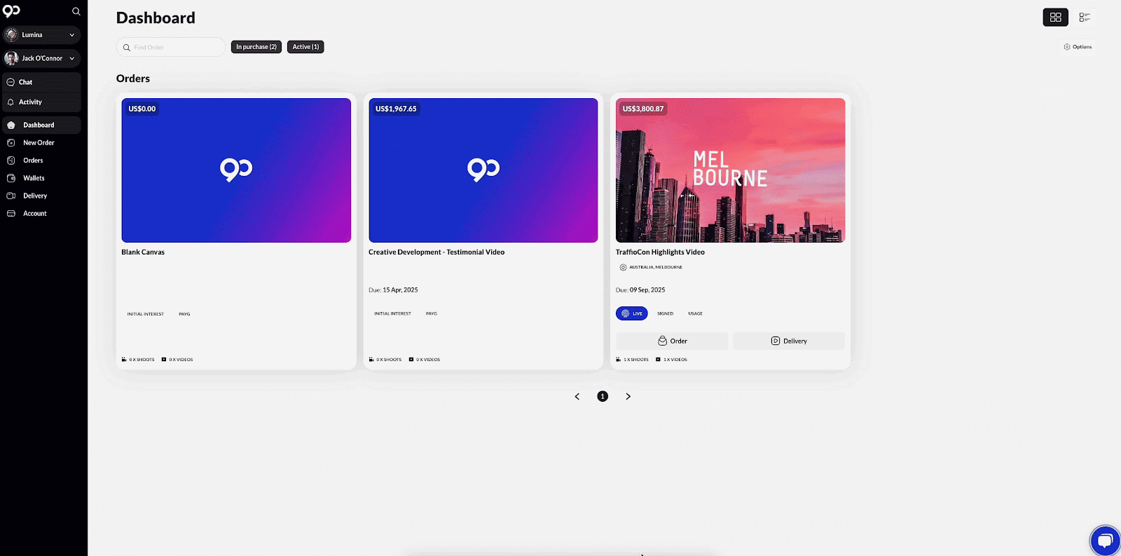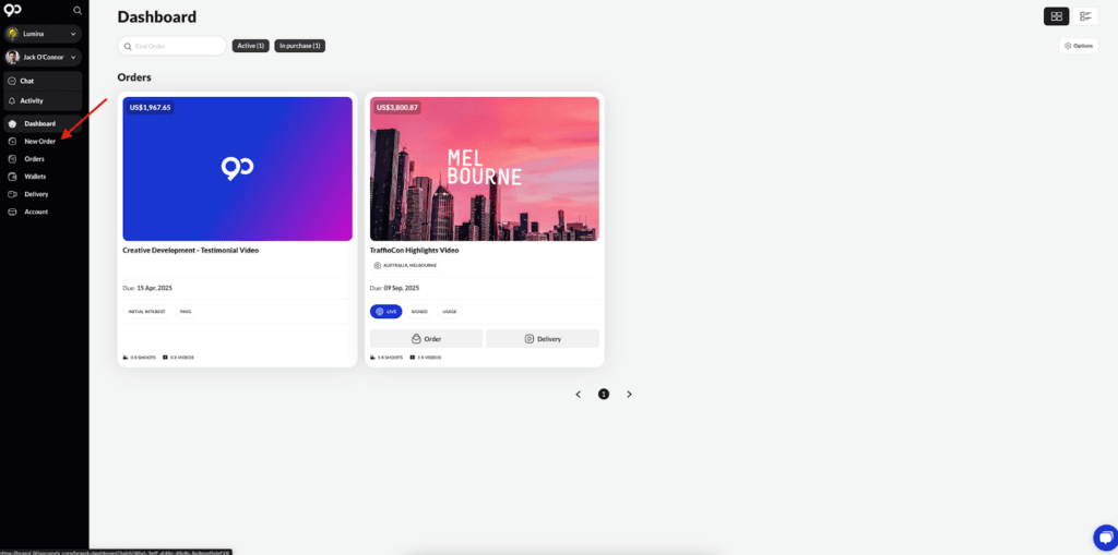 90 Seconds offers a wide range of services and solutions across our Plan, Shoot and Edit services. Click New Order on the navigation menu.
