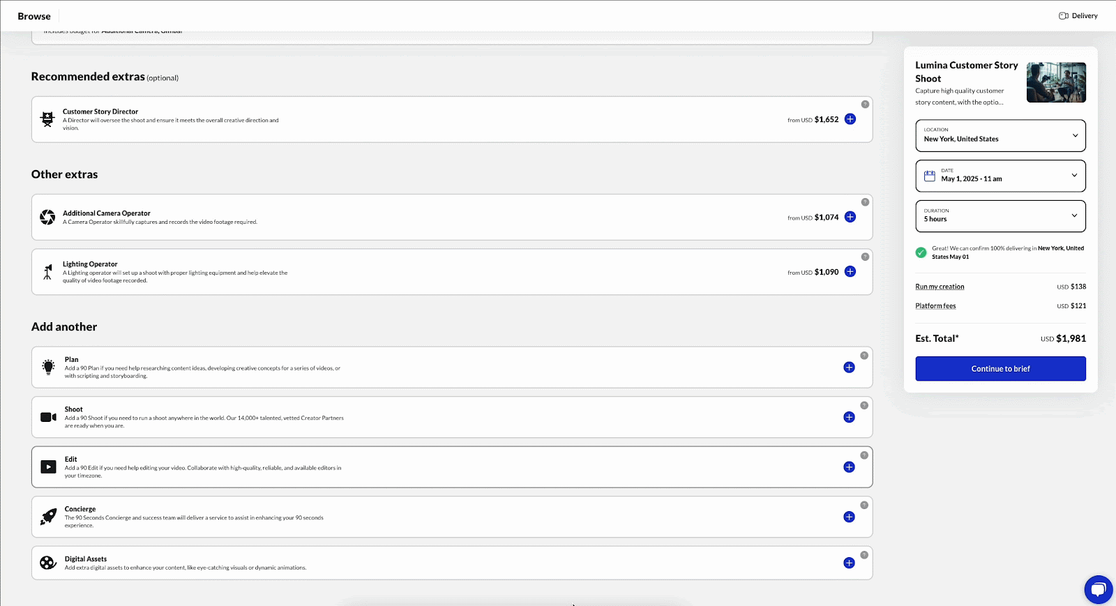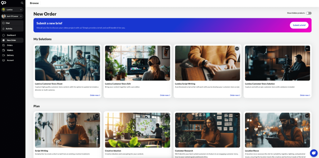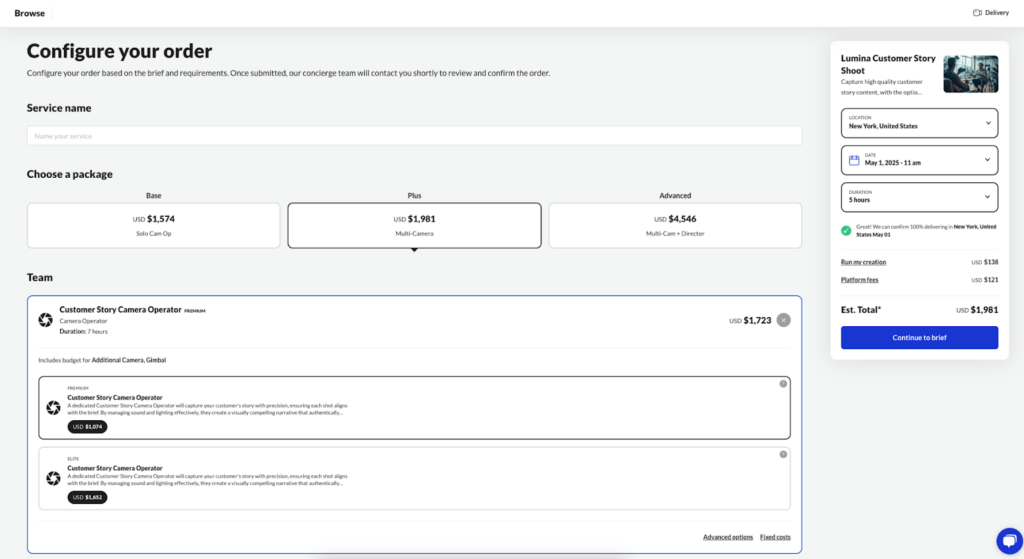 Our new Order page lets you create and customize your project based on your specific needs — from choosing services and setting dates to uploading briefs and assets. Prefer a tailored approach? Our Concierge Team is here to help every step of the way.