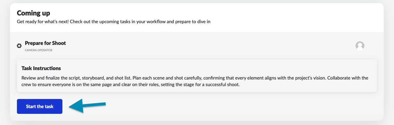 Tip: if the Start task button does not appear, hover over the profile icon to reveal the start button.