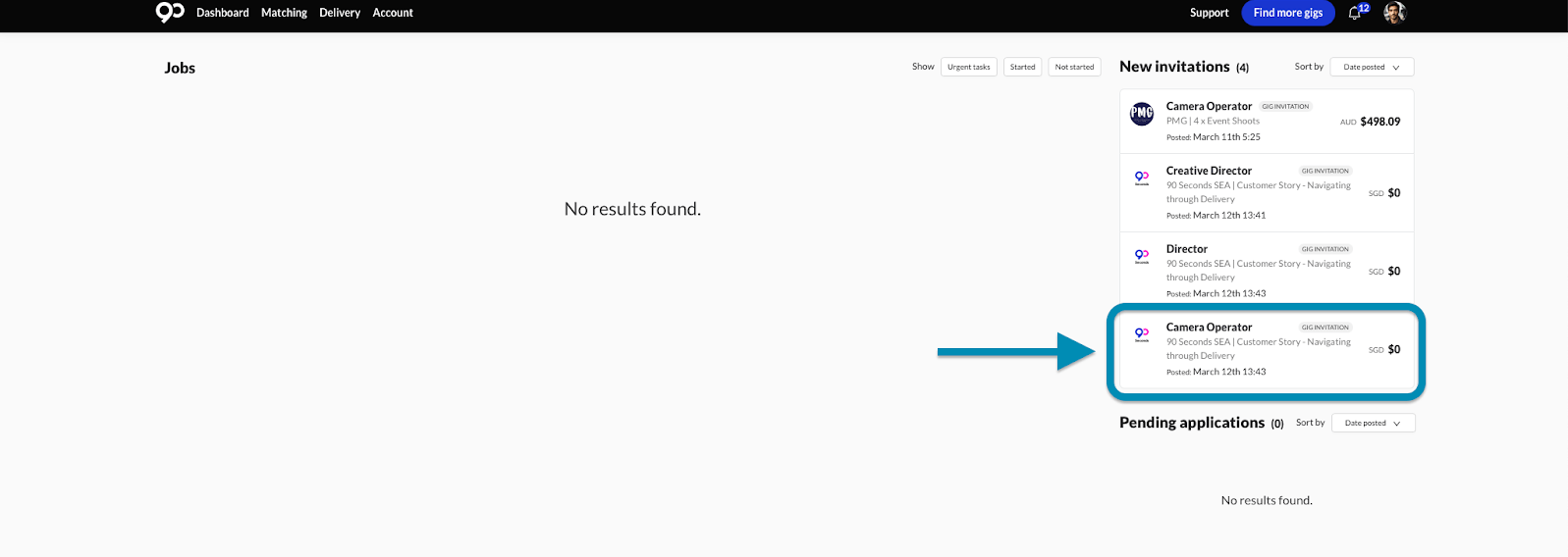 If you have been successfully matched to the gig opportunity, the ‘Application Status’ will reflect as ‘Matched’