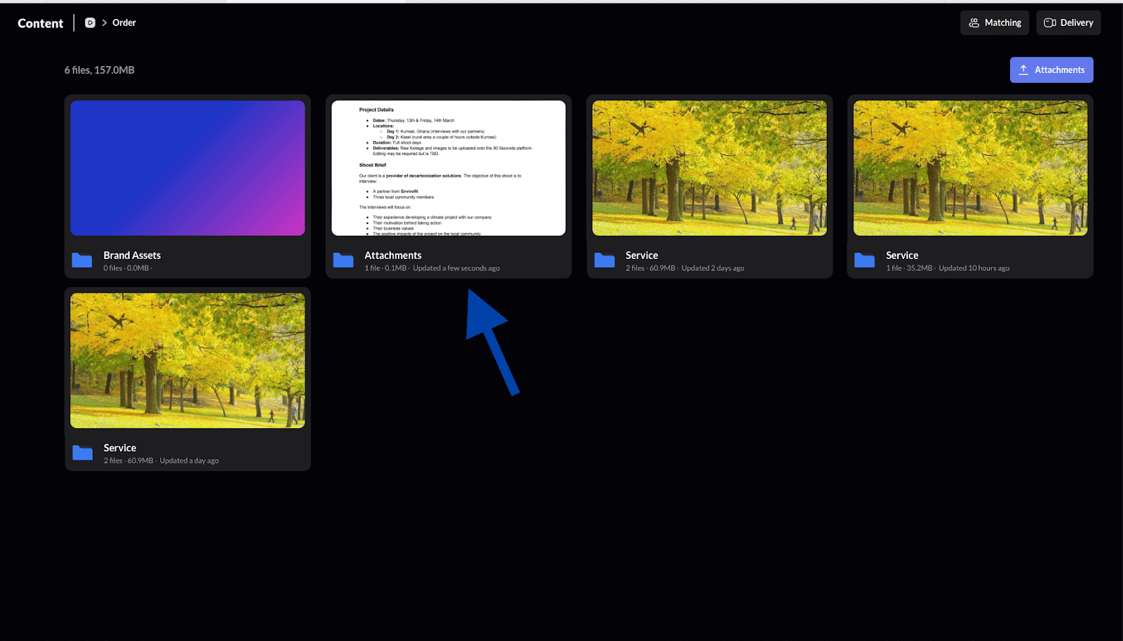 How to Find Your Brief or Attachments in a ProjectGo to "Matching"