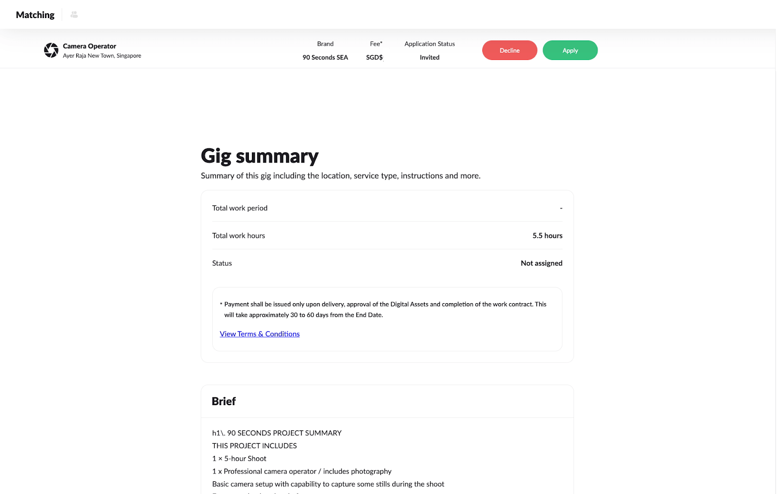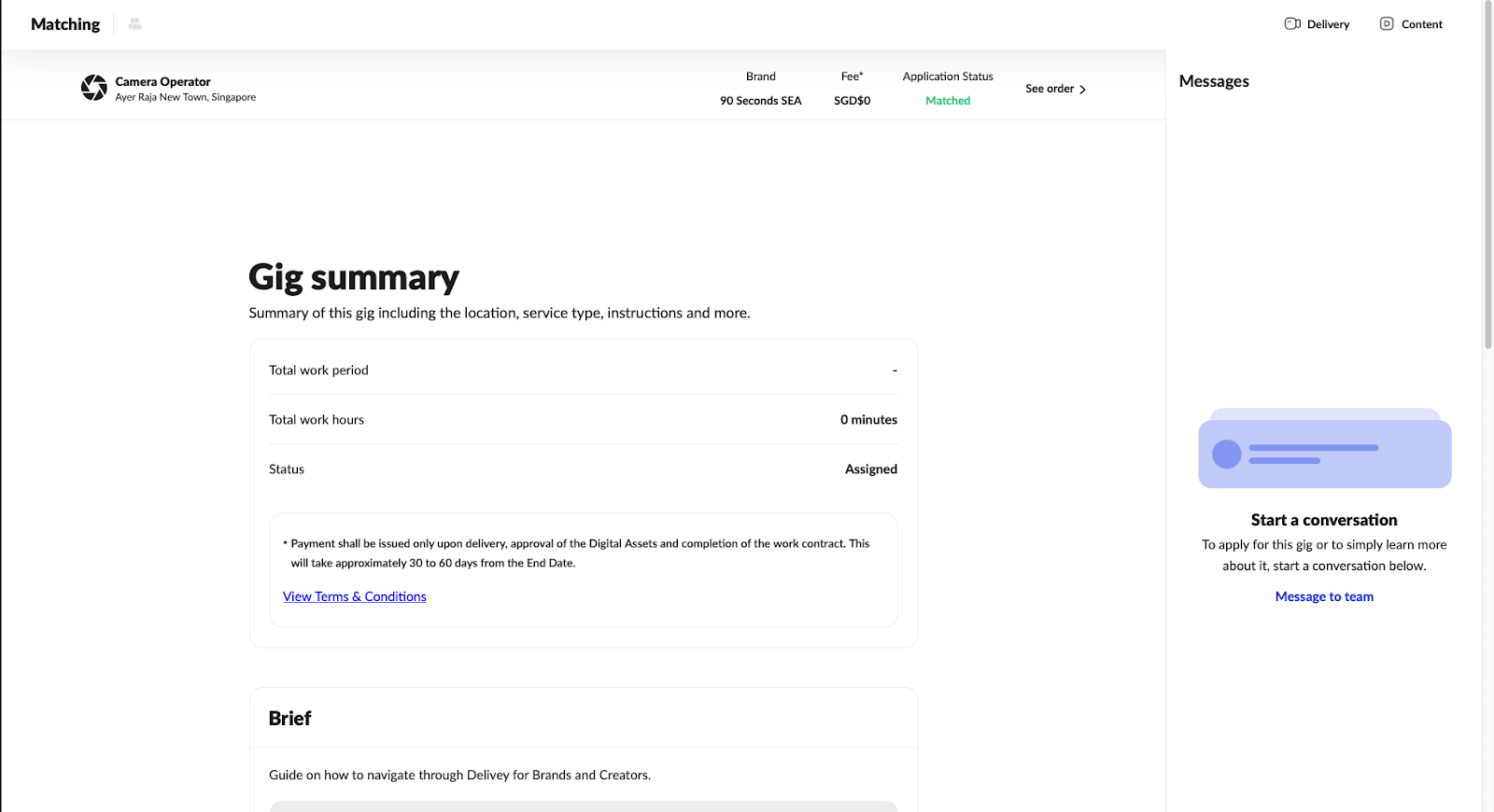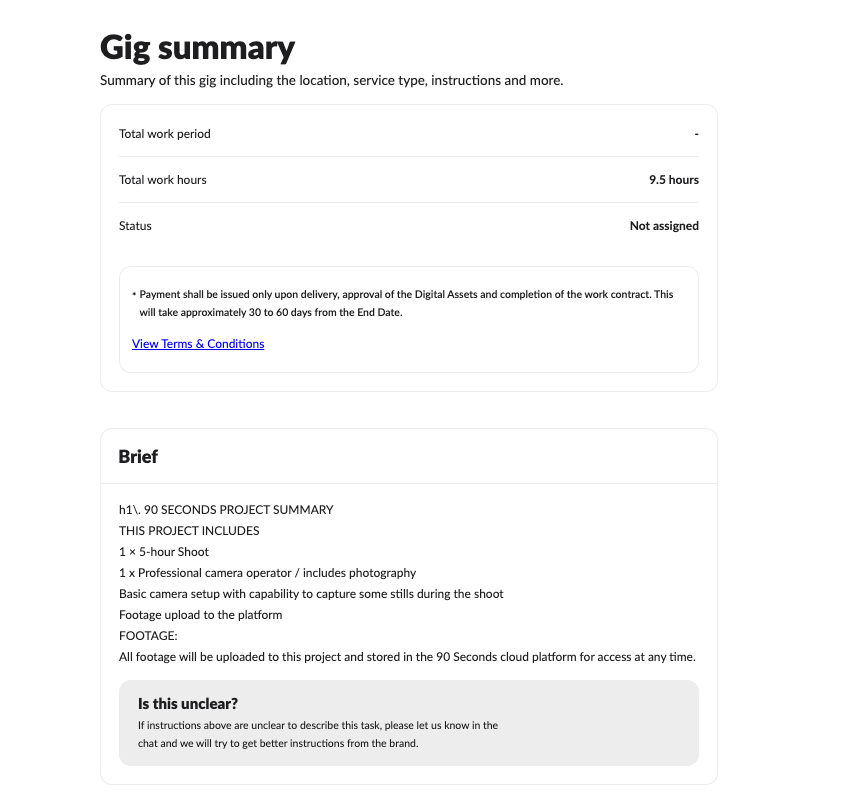 Before applying for a gig, it’s essential to carefully review all the details in the Gig Summary and Brief to ensure you fully understand the job requirements. This step helps avoid confusion,