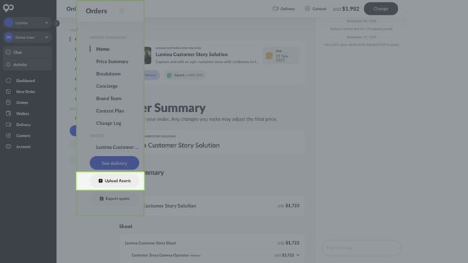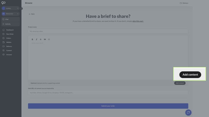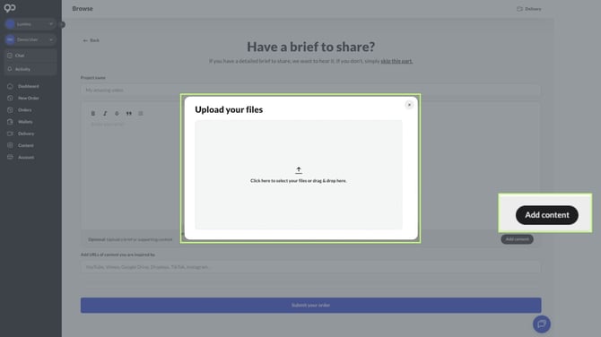 Alternatively, if you have already submitted the Brief and then realise you need to upload a document, please head back to the Order page and click on Upload Asset tab